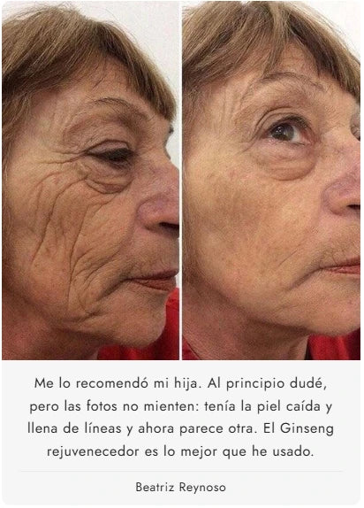Al estimular la producción de colágeno y mejorar la elasticidad de la piel, Ginseng reduce significativamente los signos del envejecimiento, devolviendo a tu piel su juventud y vitalidad en pocas semanas.